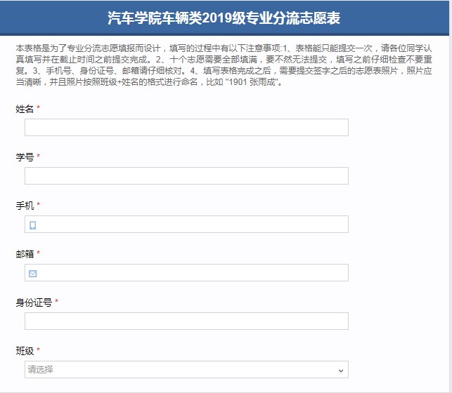 每个学生必须填报专业方向(在麦客APP中依次选择十个志愿),院内学生志愿顺序不受专业限制。转专业学生仅填写本专业志愿所在方向志愿,多填无效。