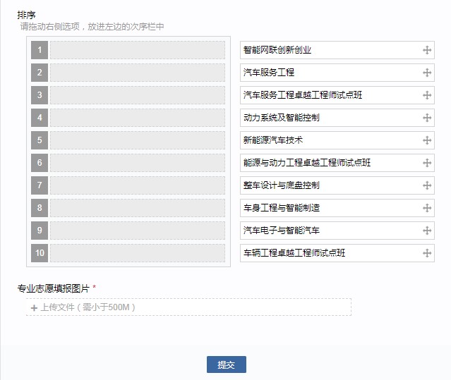 每个学生必须严格按照志愿表要求填满十个志愿,否则无法提交。