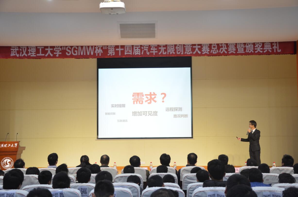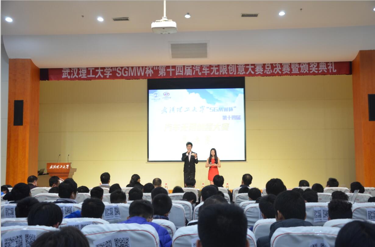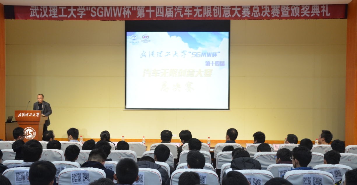 创意无限,精彩无限。11月25日,武汉理工大学“SGMW”第十四届汽车创意无限大赛总决赛在西院会议中心301室隆重举行。上汽通用五菱股份有限公司经理王贵,以及学校和学院相关部门的领导和老师出席了本次大赛。