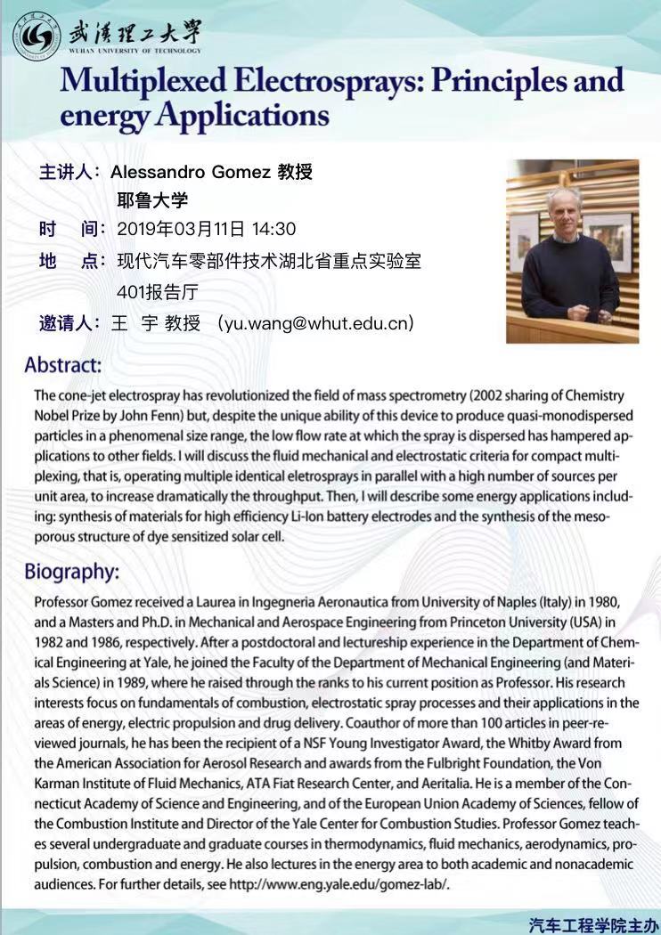 【汽车学术讲座】Multiplexed Electrosprays:Principles and Energy Applications