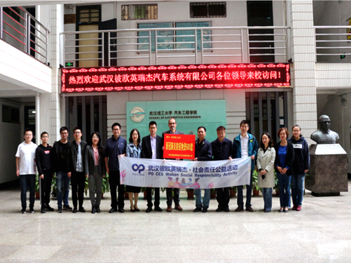 武汉彼欧英瑞杰汽车系统有限公司嘉宾与武汉理工大学领导共同合影留念。捐赠仪式结束后,公司研发中心经理考斯特为新葡的京集团8814vip研究生带来汽车供油系统前沿技术专题报告。
