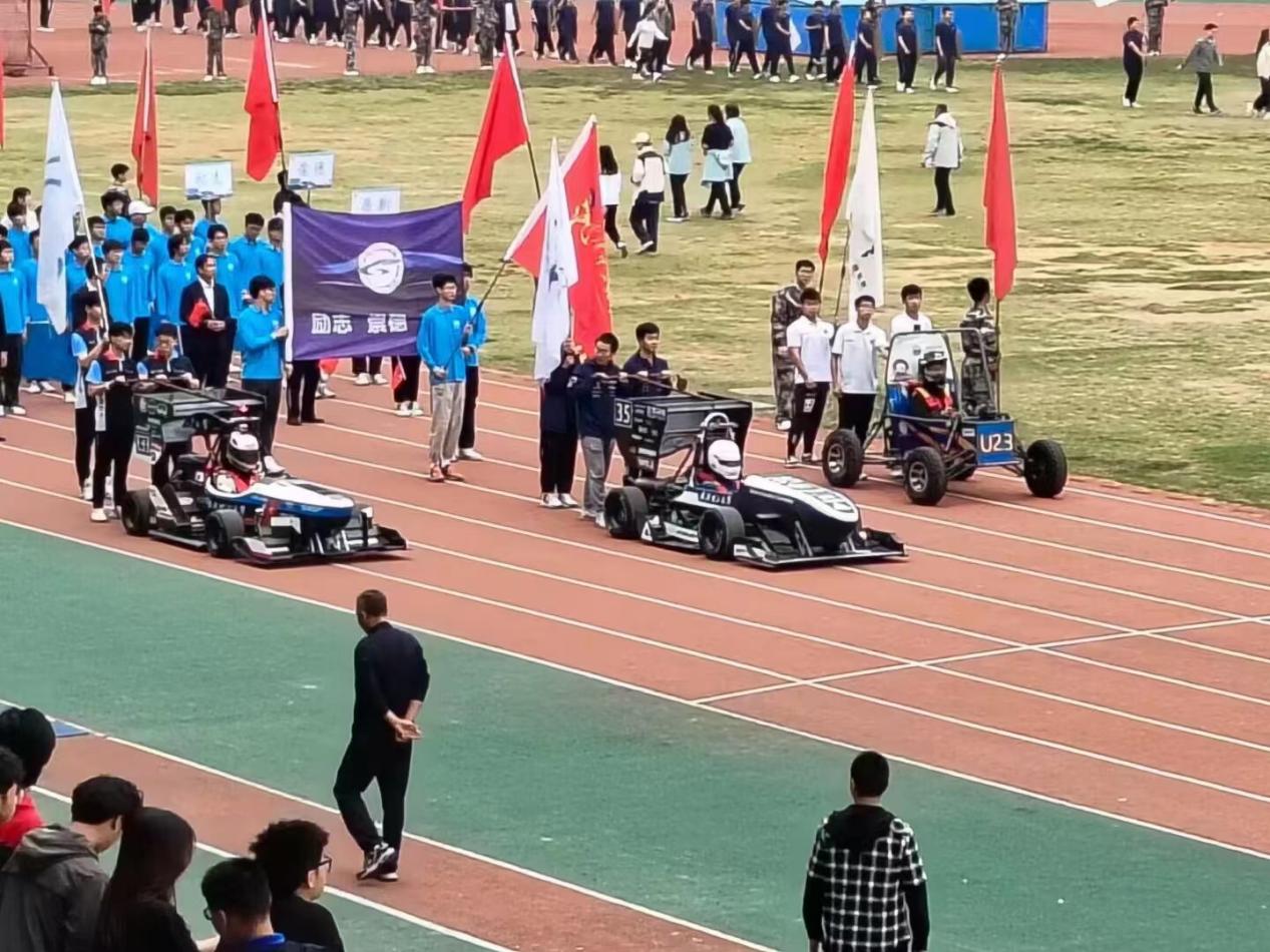 首先,伴着昂扬乐声和播音讲解,由燃油巴哈车队、燃油方程式车队、电动方程式车队组成的车队方阵缓缓驶来。车身色彩简洁、线条流畅,车手正襟危坐、控制精准,彰显汽院学子的果决刚毅、精益求精。酷炫的赛车和凌厉的气场引来热烈掌声,展现学院特色,将会场氛围推向高潮。