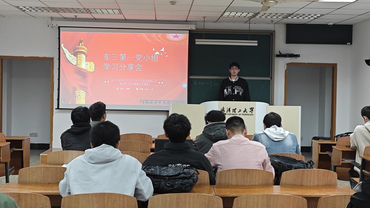 为深入学习贯彻党的二十大精神,深刻领悟习近平总书记近期重要讲话精神,本科车辆第三党支部第一党小组于11月29日下午18时30分在弘毅楼313教室召开党小组学习会,会议主题为“学习习近平总书记在中共中央政治局第九次集体学习时的重要讲话精神”。本次会议由郑阳同志主持,党小组全体党员和发展对象参会。