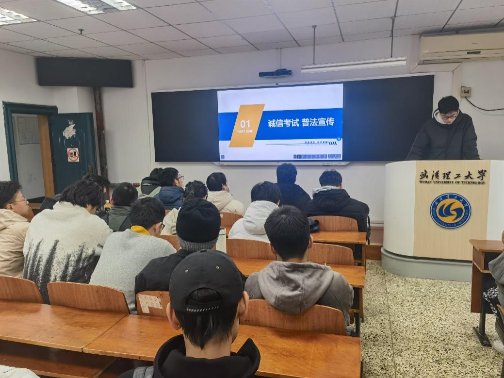 为进一步推动学校考风考纪建设,加强学生诚信考试意识,营造良好的学习和考试氛围,确保全国硕士研究生招生考试、全国大学英语四六级考试、学校期末考试等有序开展,储能2102班开展"积极备考·诚信应考"主题班会,首先班长丁乐章就期末考试临近,诚信应考这一问题和同学们一起学习学生手册相关内容,同时邀请优秀学生做一些分享。