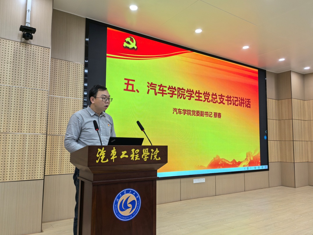 仪式第四项,新发展党员李浩宇同志代表本次全体新发展党员进行了表决心发言。他表示,入党对于一名大学生具有无比光荣的意义,未来自己将以党员标准更加严格要求自己,做好人生规划:一方面,将更加深入地学习党章党规等党的基本理论知识,不断提高自身思想政治素养,另一方面,要树立终身学习的观念,努力学习汽车专业知识,提高自己的工程实践能力,以期为党和人民做出自己的贡献。