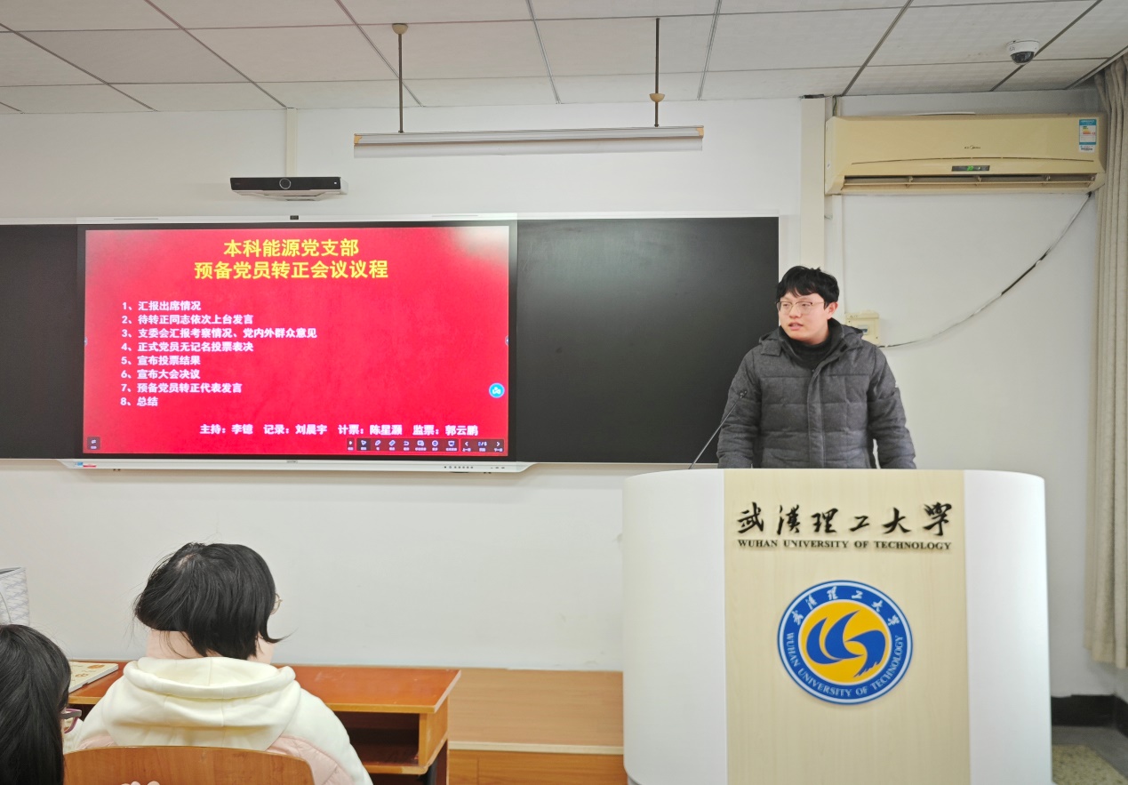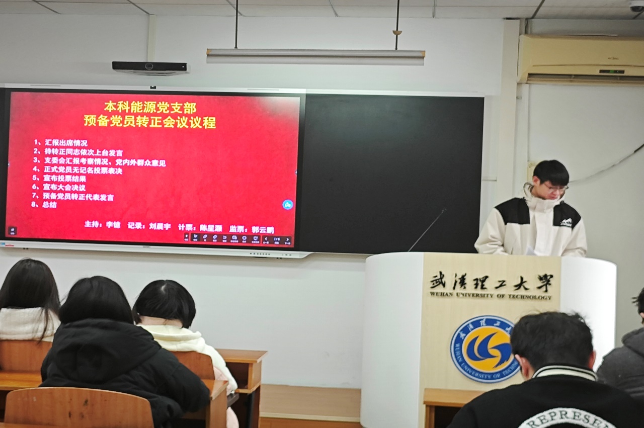 12月26日下午14时,新葡的京集团8814本科生能源党支部于弘毅楼309教室召开党员大会,讨论陈林鑫等4位预备党员转正事宜。本次会议由支部副书记李镱主持,全体能源党支部党员与会。