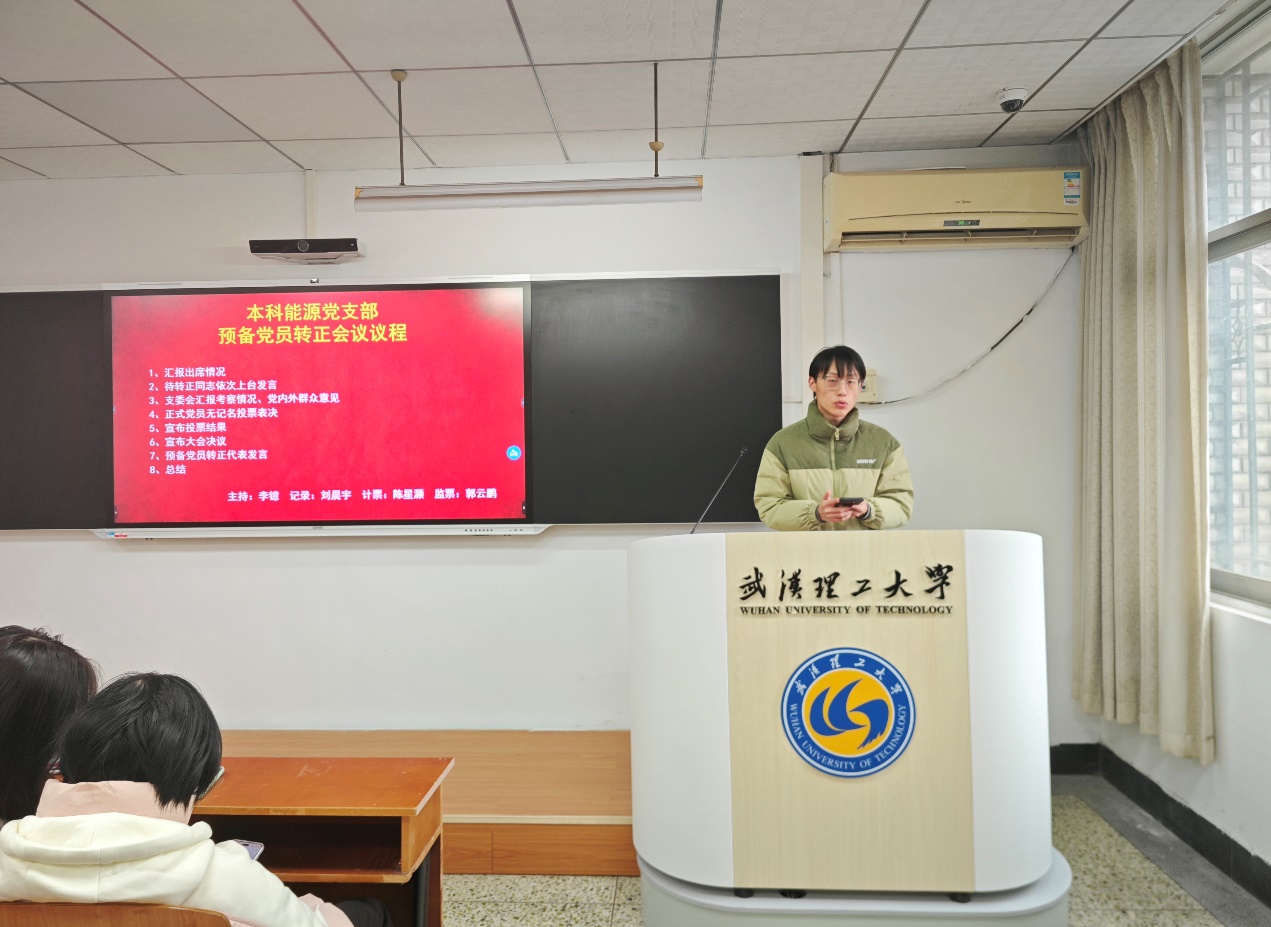 接着,党员同志进行无记名投票,李镱同志宣读支部大会决议,4位同志皆全票通过。紧接着,转正代表陈林鑫同志上台发言,表明自己在这段时间里,全身心地投入到理论知识的学习中,积极参与支部的各项活动,努力提升自我。以及总结了预备期期间与能源党支部同进步共发展收获,感谢支部其他同志的帮助和付出,对于未来充满了坚定的决心和信念,决心继续沿着党的指引砥砺前行,为实现中华民族的伟大复兴贡献自己的一份力量。