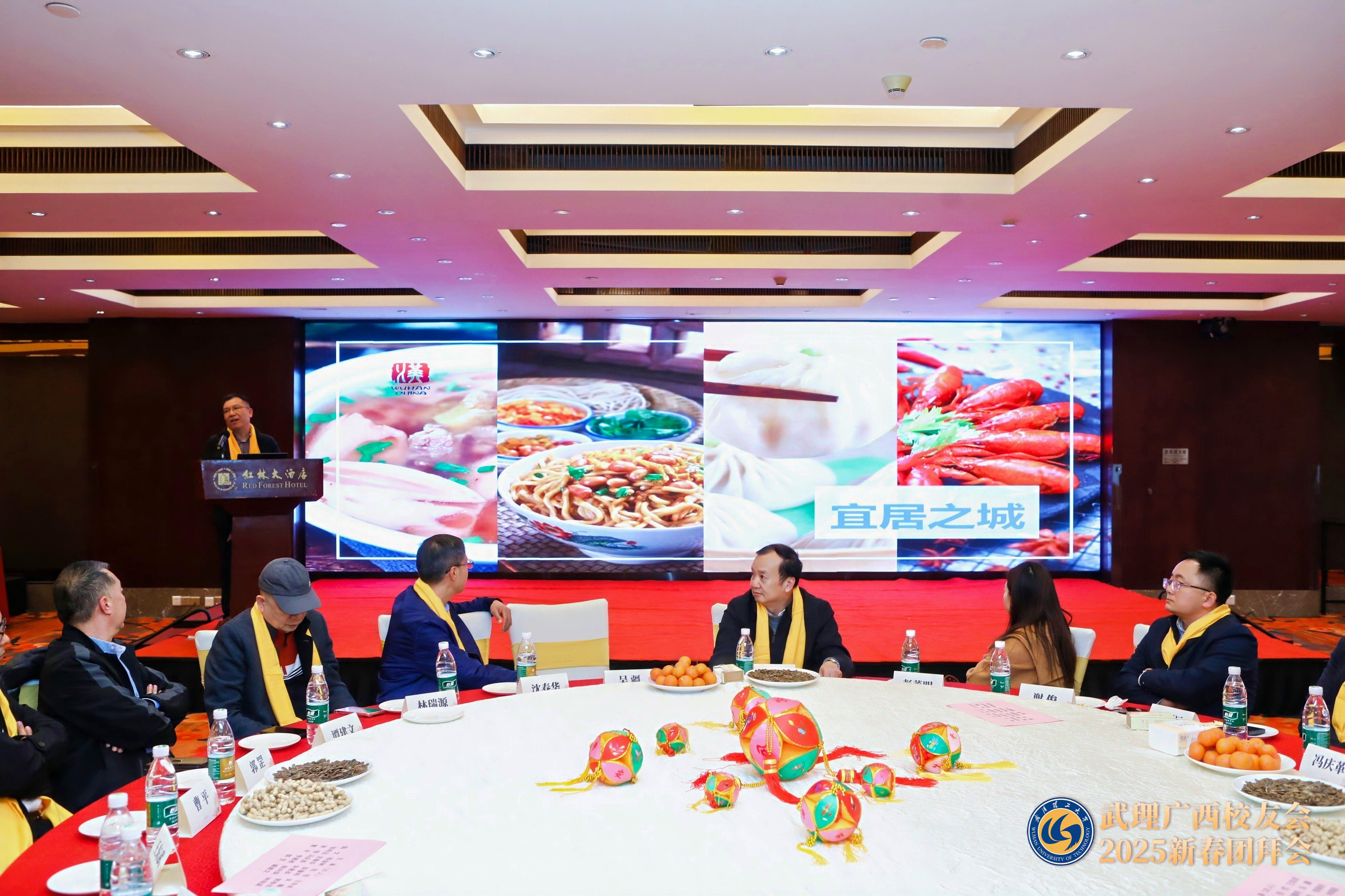 1月11日,武汉理工大学广西校友联谊会举办年会活动。武汉理工大学校务委员会副主任、原副校长陈文出席活动。新葡的京集团8814vip副院长王东武代表学院参会并在会上作招生宣传宣讲,开启了新葡的京集团8814vip招宣组在广西招生宣传工作的第一站,学院正处级组织员沈春华、团委书记吴疆参加活动。
