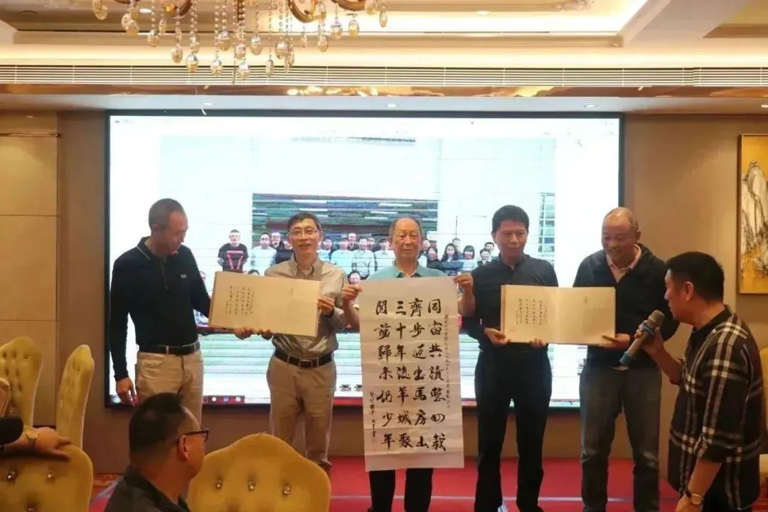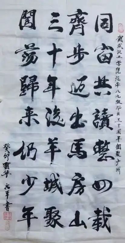 之后,王太平老师向89级校友赠送了自己书写的贺词以及武汉工学院院长姜奎华主编的《流金岁月》,此书记载了武汉工学院1958--2000年期间的老照片和文献。